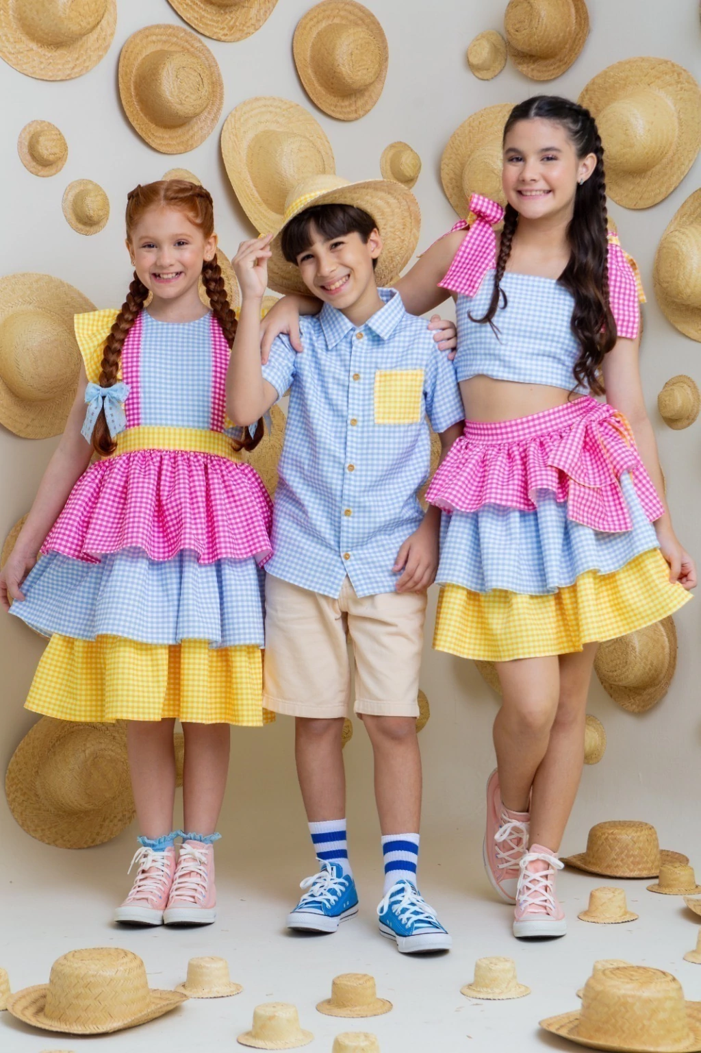 Conjunto a Caipira Aurora (Salopete + Blusa + Laços De Cabelo)