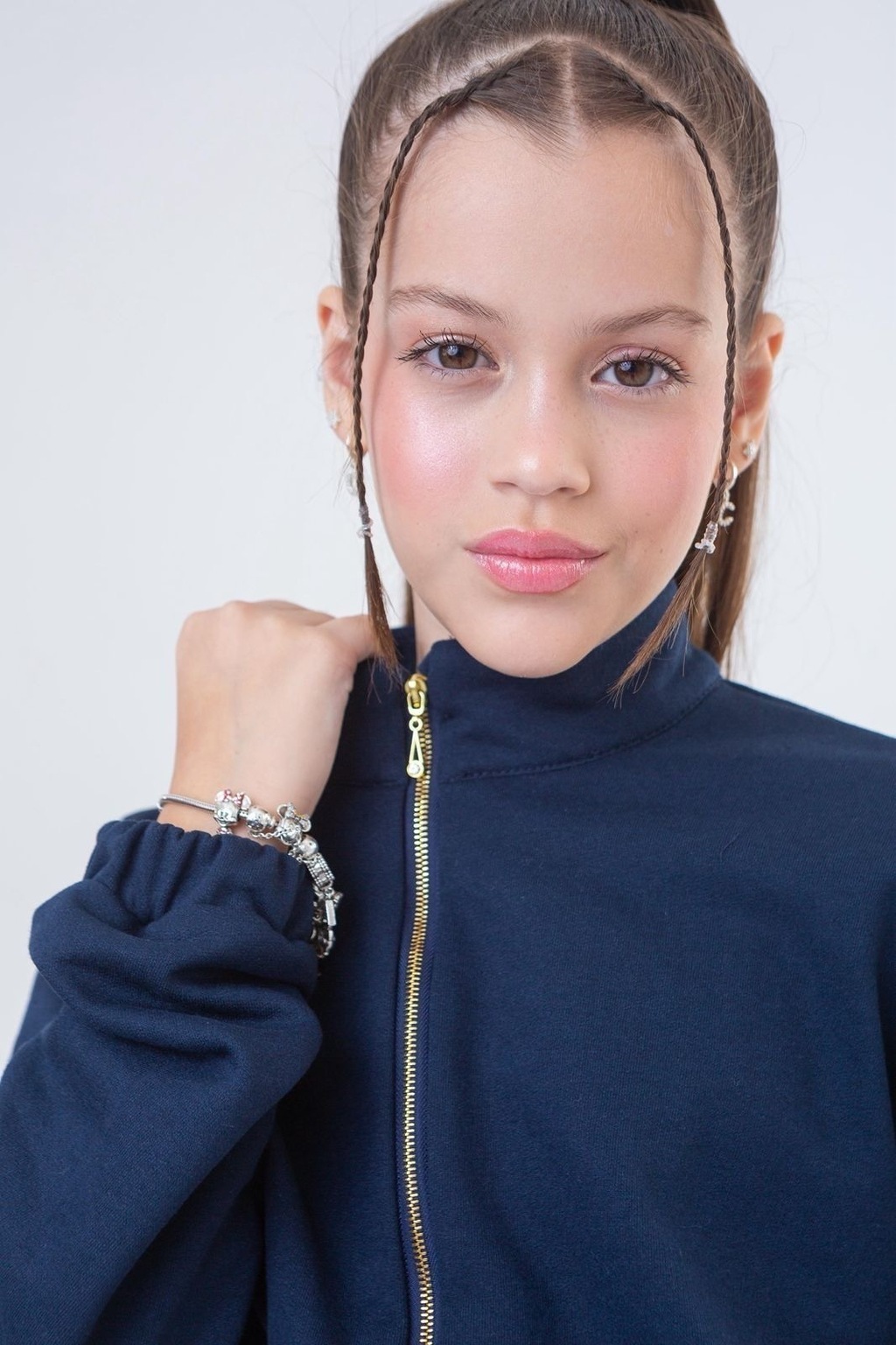 Casaco  em moletom premium abertura frontal com zíper dourado .
