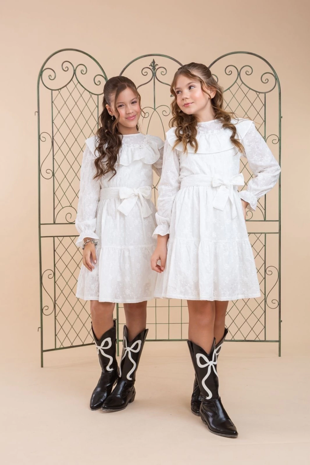 Vestido com modelagem evasê, babados fluidos com mangas longas e elástico na cintura (ajusta e modela) em tecido fino. ( acompanha vestido interno)